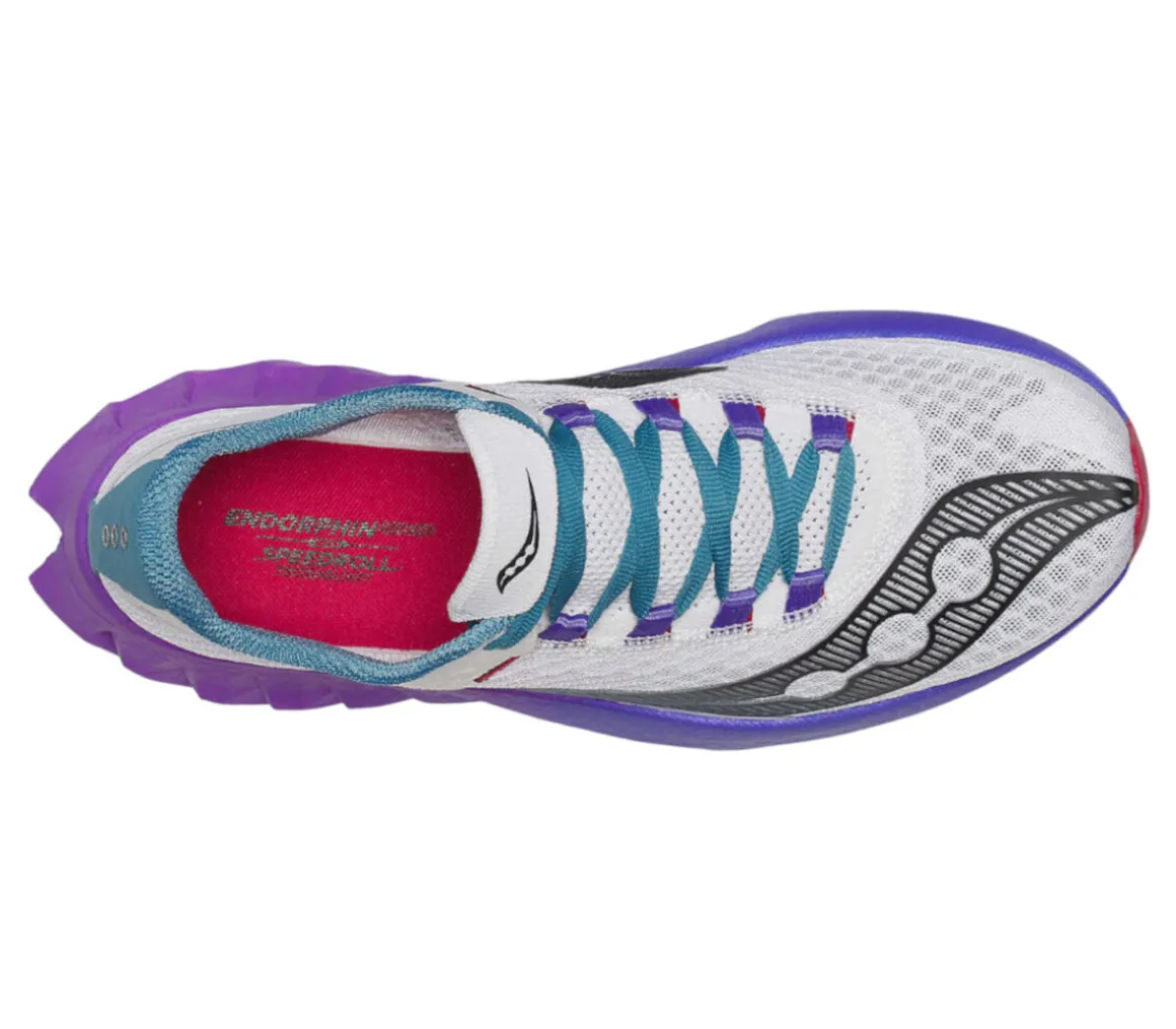 La Saucony Endorphin Pro 4 è una scarpa da running consigliata ai runner che corrono competizioni veloci e impegnative, grazie alla dinamicità della tecnologia SpeedRoll.