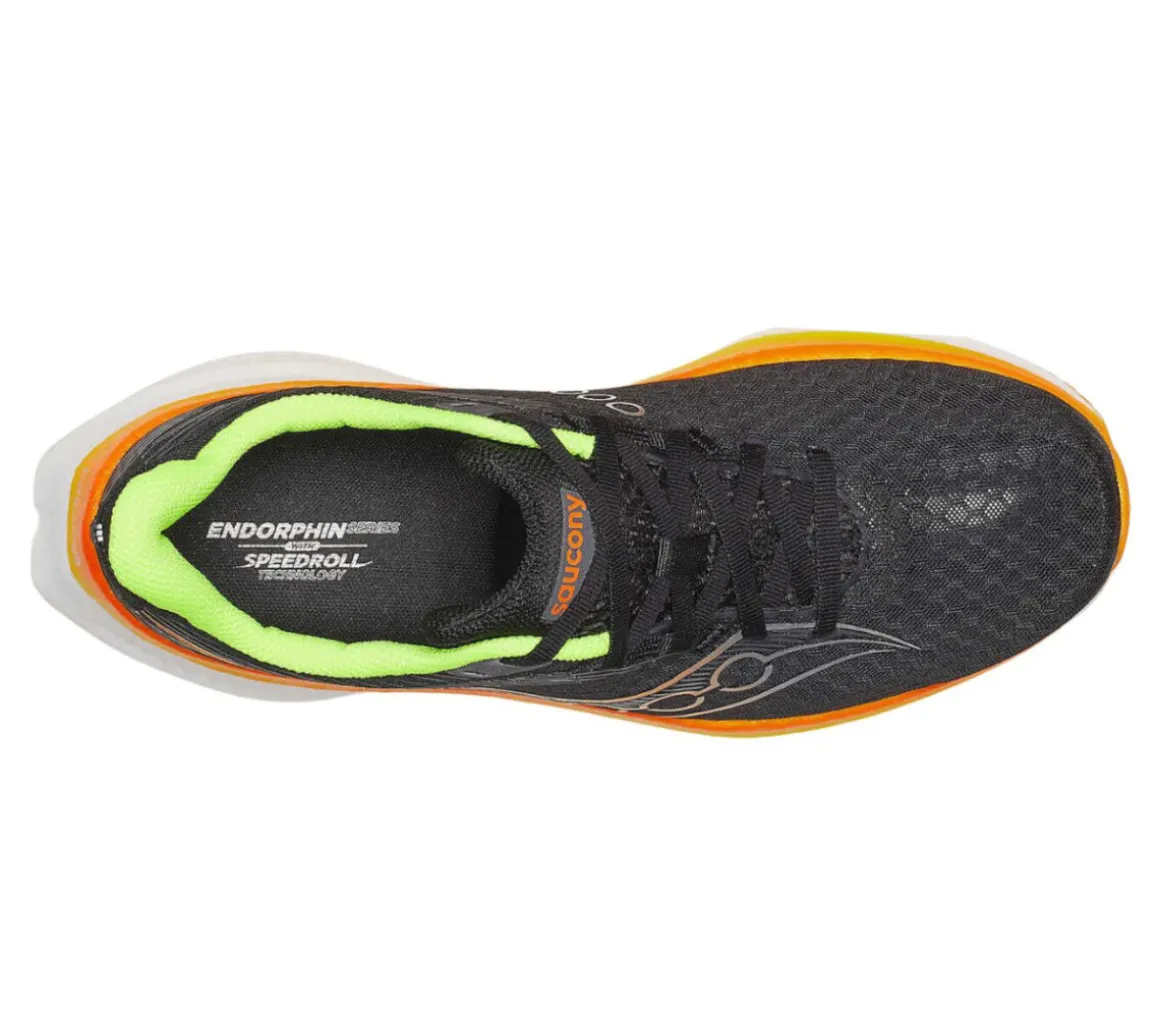 La Saucony Endorphin Speed 5 combina leggerezza e sostegno per gli allenamenti a ritmo veloce, grazie al doppio strato di schiuma PWRRUN PB, morbida e ammortizzata, e alla piastra SpeedRoll, stabile e reattiva.