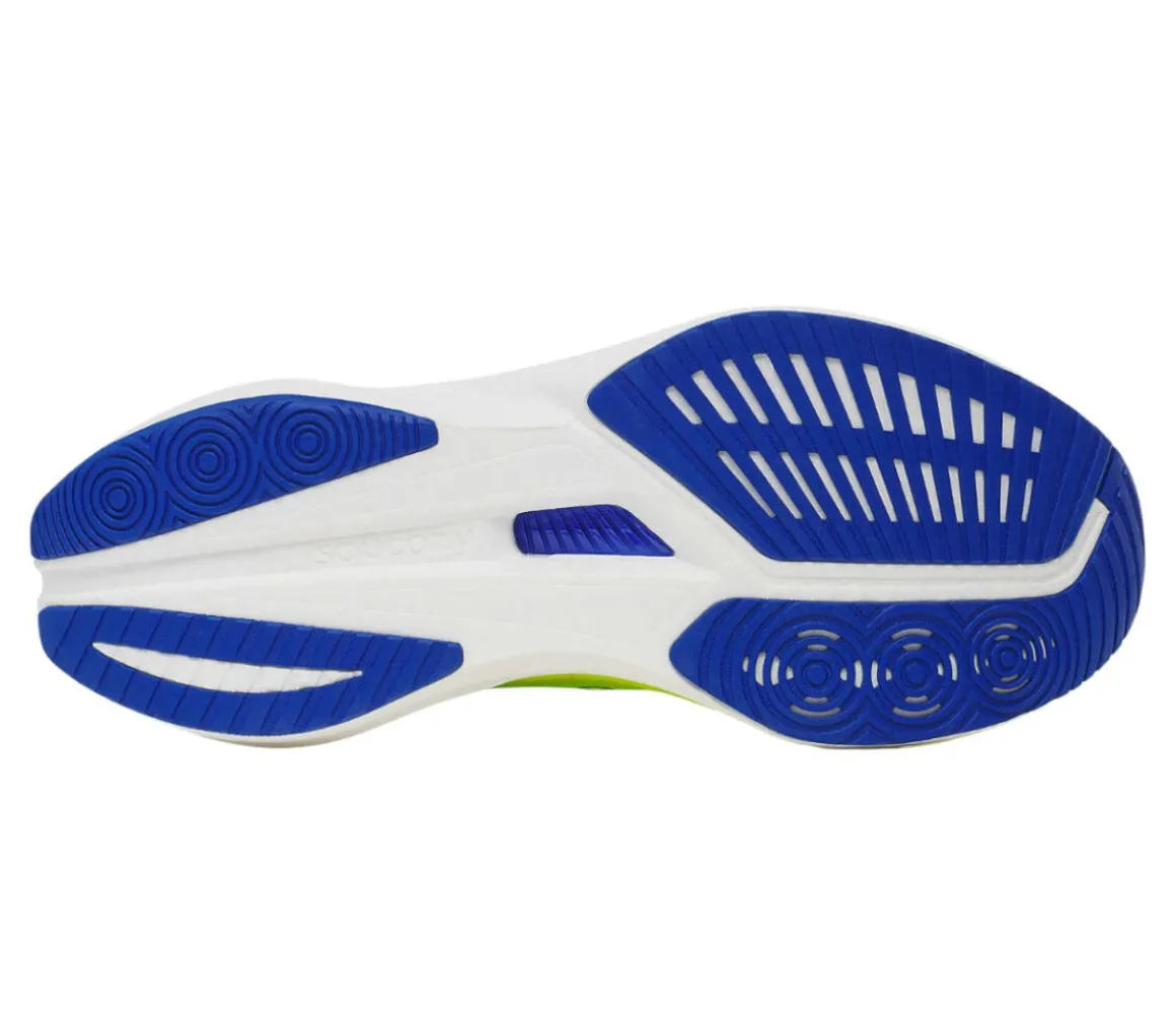 La Saucony Endorphin Speed 5 è una scarpa da running ideale per i runner che corrono a passo medio veloce sulle lunghe distanze, su strada, grazie alla trazione performante offerta dalla suola XT-900.