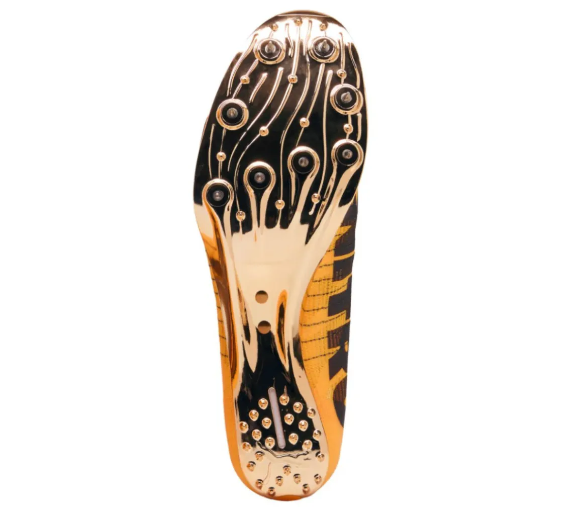 La suola chiodata è stata integrata con dei chiodini specifici per affrontare le gare e la corsa in curva, grazie alla loro forma affusolata.