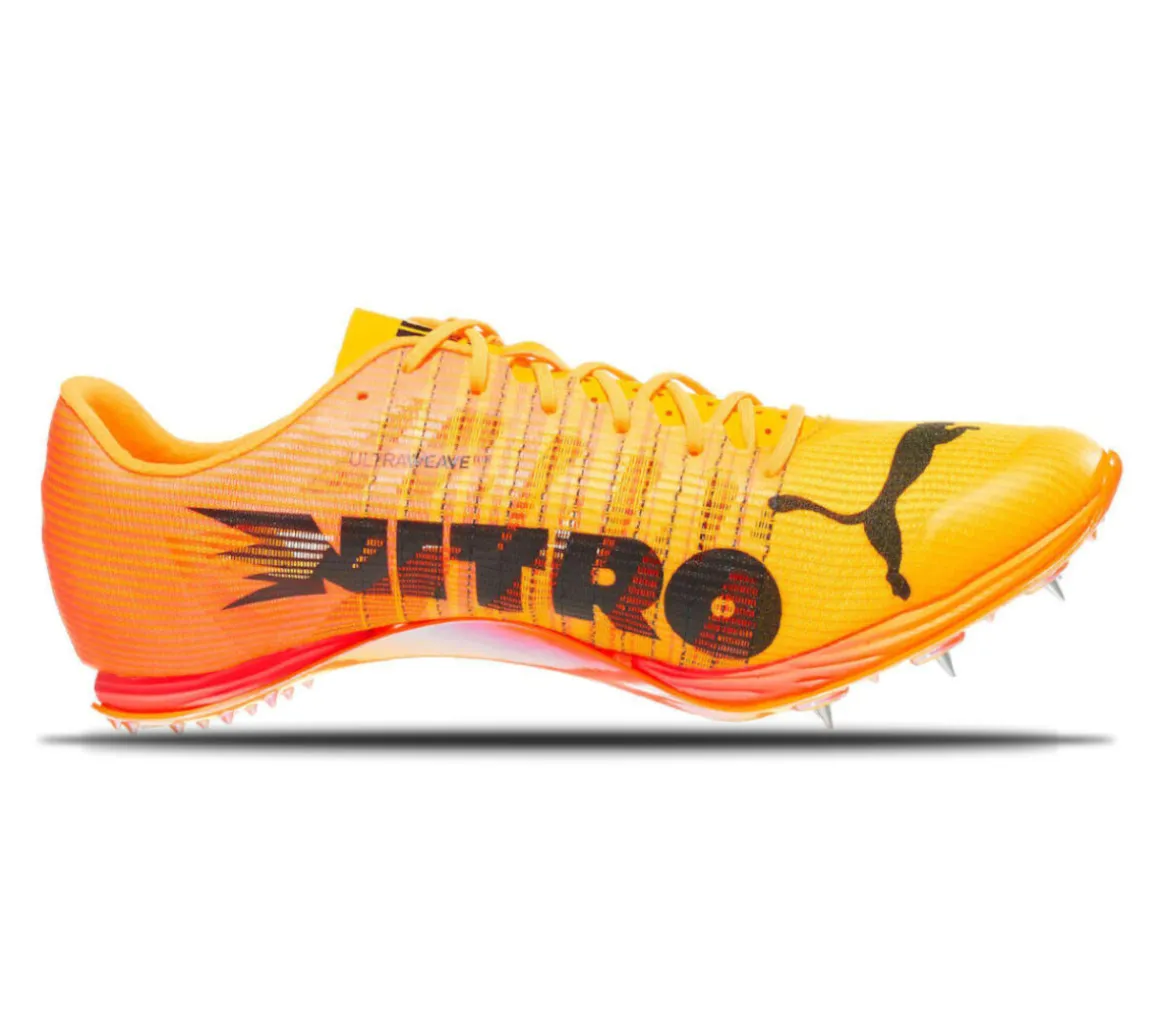 La Puma Evospeed 400 Nitro è una scarpa da atletica leggera unisex consigliata ai runner che gareggiano e si allenano sulle brevi distanze, dai 100 ai 400 metri, grazie alla propulsione della piastra PWRPLATE.