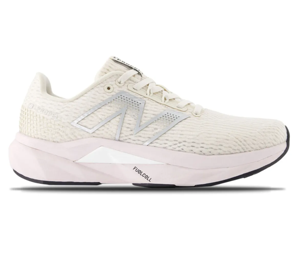 La New Balance FuelCell Propel v5 assicura la velocità e la reattività della piastra TPU, ideale per le runner medio leggere che corrono sull’asfalto.