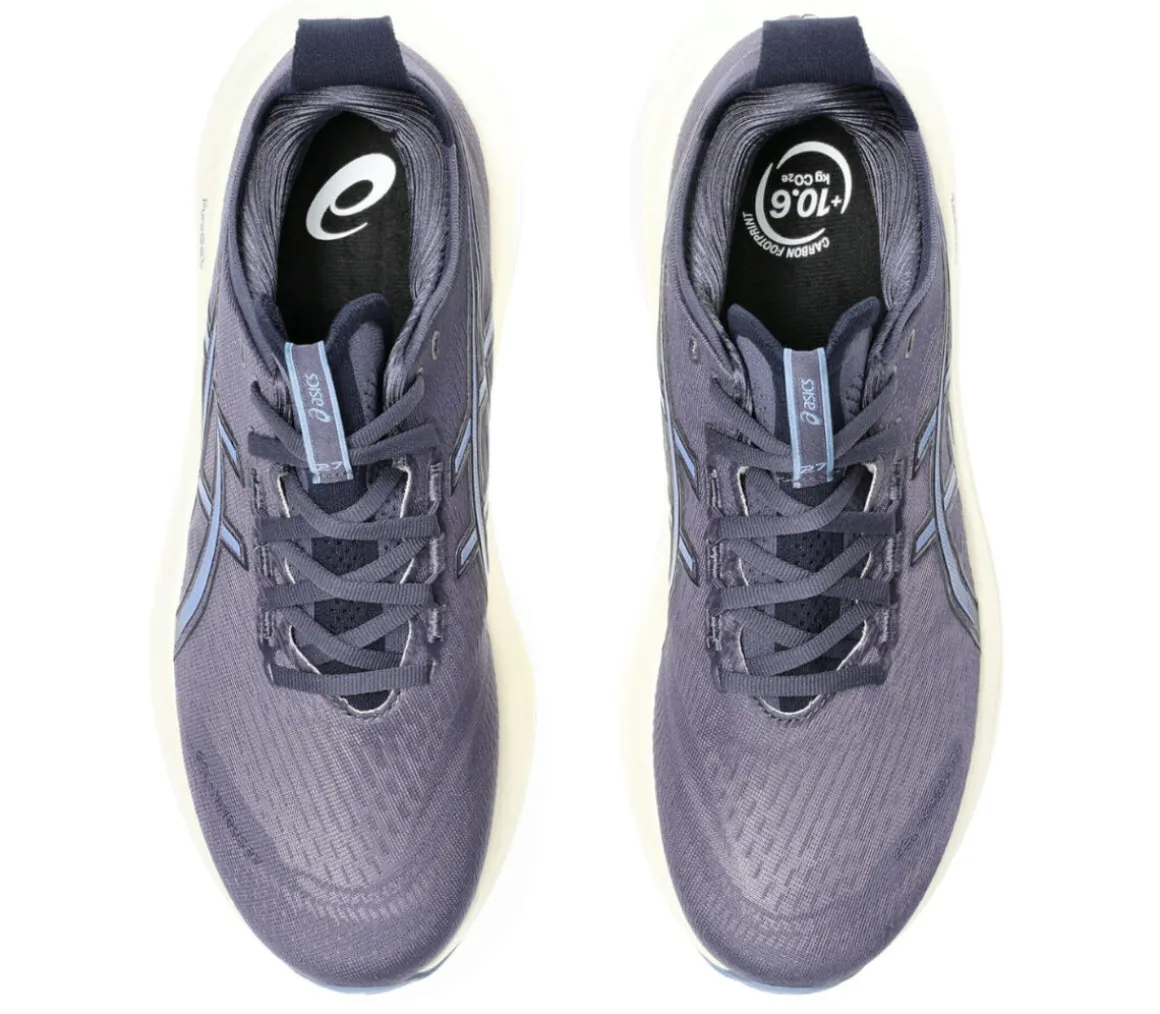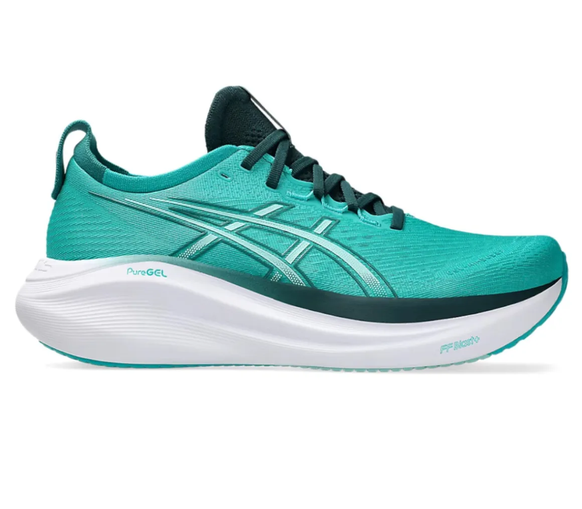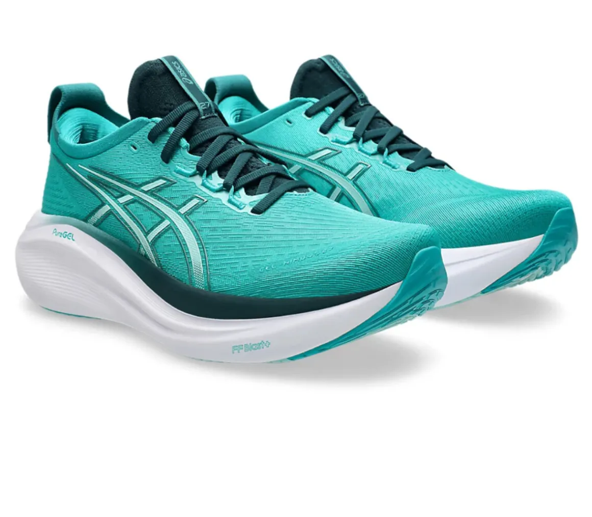 La Asics Gel Nimbus 27 è una scarpa perfettamente ammortizzata e confortevole, grazie al cushioning della schiuma FF BLAST PLUS ECO e alla morbidezza della tecnologia PureGel.