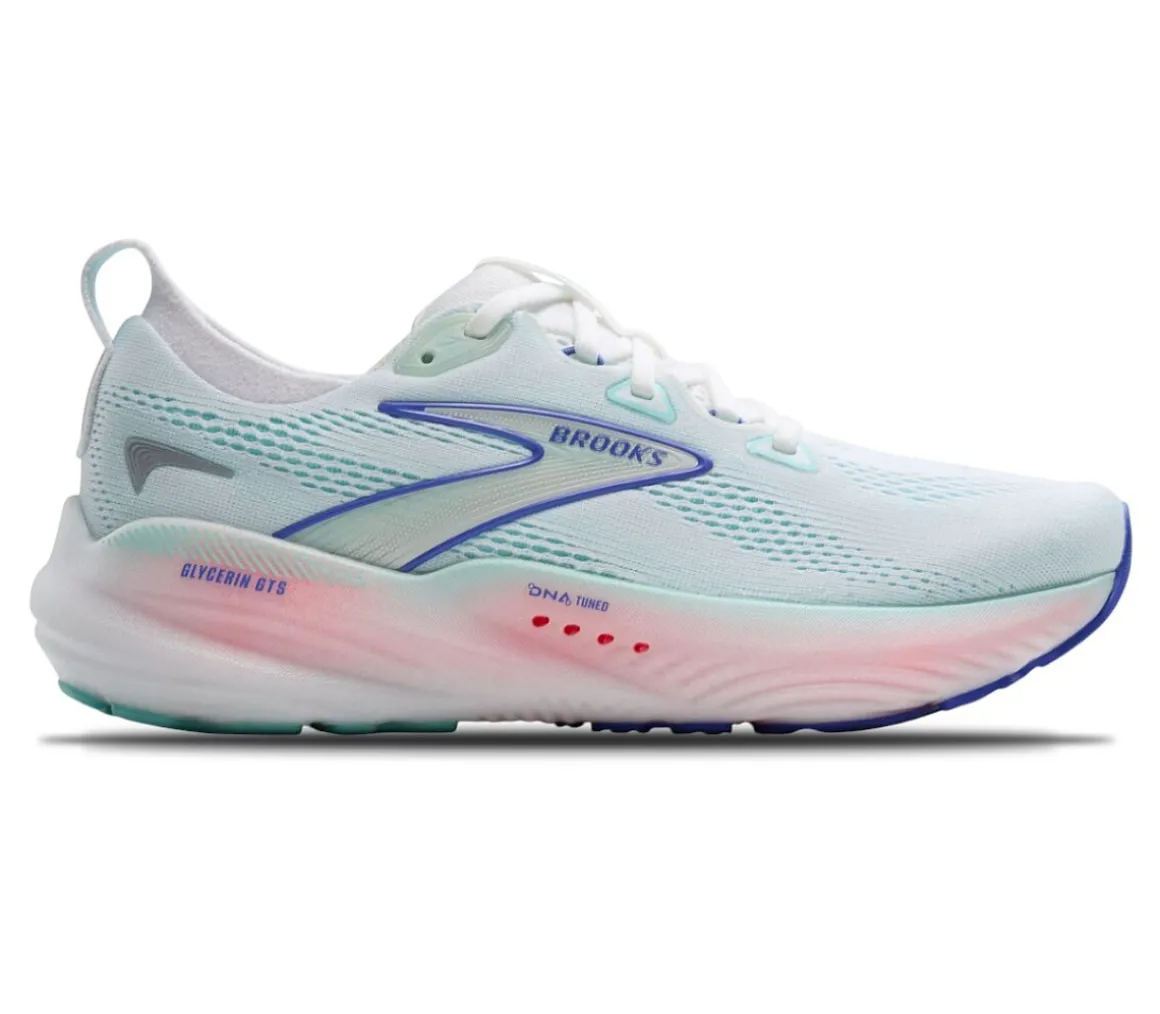 La Brooks Glycerin GTS 22 è stata rinnovata per assicurare un’ammortizzazione morbida, grazie all’intersuola DNA Tuned, e massimo supporto per la runner con appoggio in pronazione, grazie alla tecnologia GuideRails.
