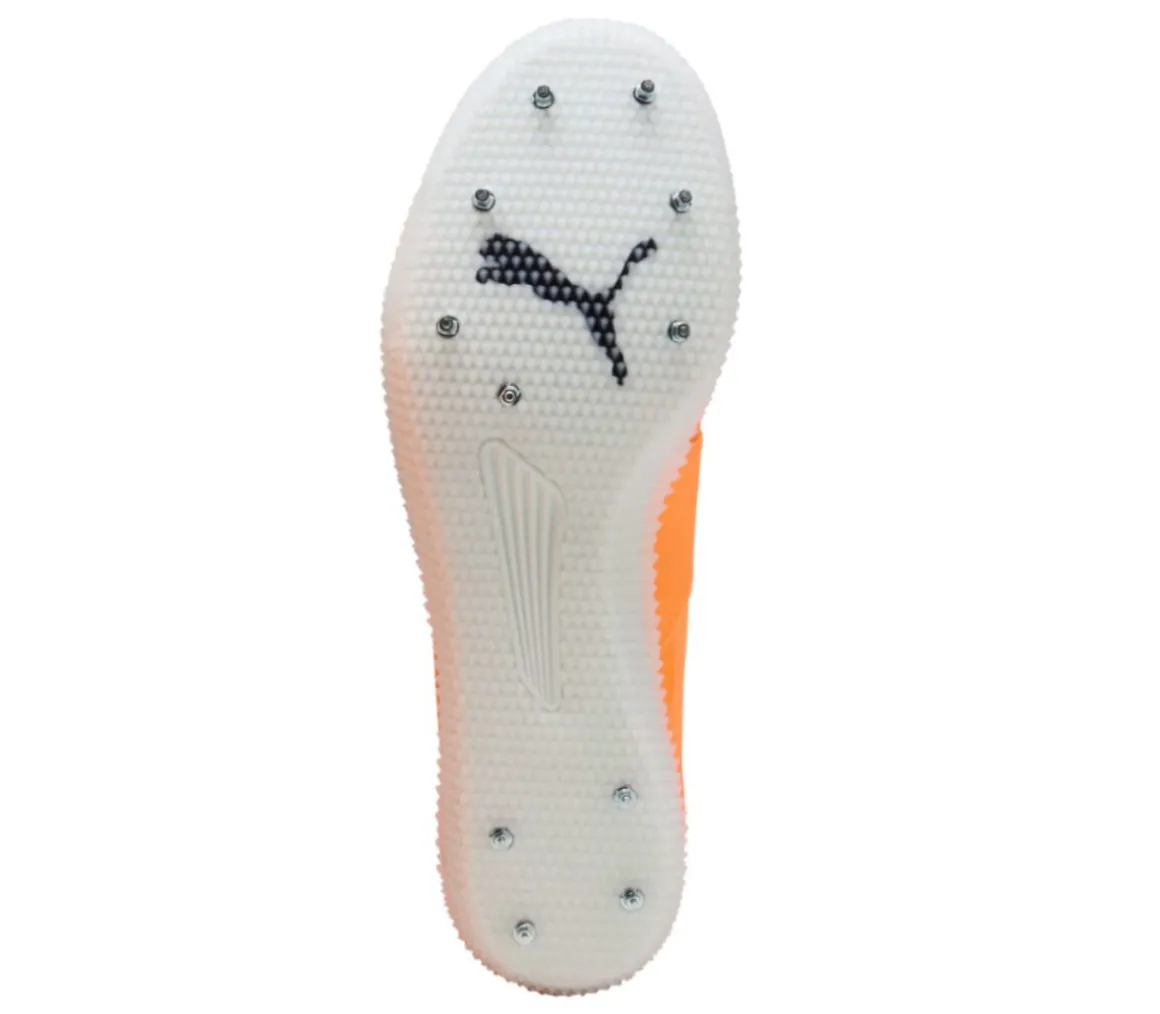 La Puma High Jump 11 garantisce una falcata propulsiva e uno stacco reattivo, grazie alla doppia intensità della piastra Pebax, che offre una spinta potente, e alla suola chiodata, che assicura un’ottima presa su pista al momento dell’atterraggio.
