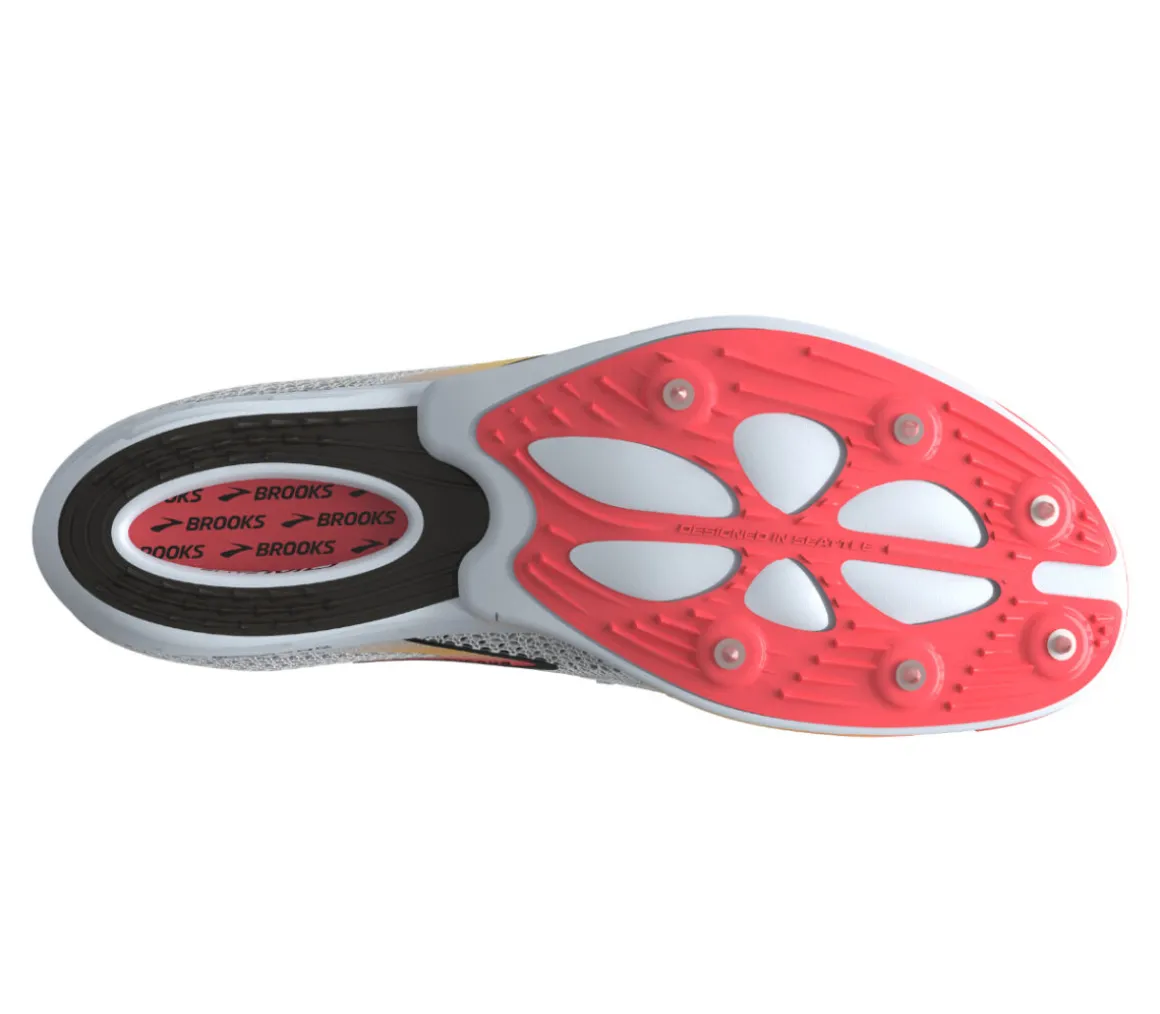 La Brooks Hyperion Elite MD è una scarpa da atletica leggera consigliata agli atleti che si allenano su pista da 800 a 1500 metri, grazie alla piastra SpeedVault Race ultraleggera in fibra di carbonio.