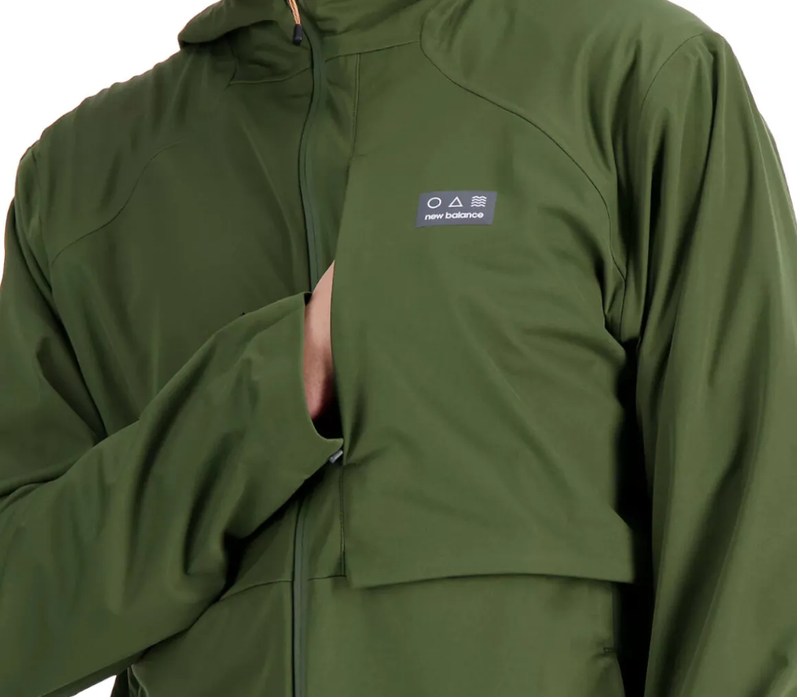 La giacca New Balance Impact Run AT Waterproof Jacket da uomo è idrorepellente e ha delle cuciture sigillate per proteggere la pelle dall’acqua.