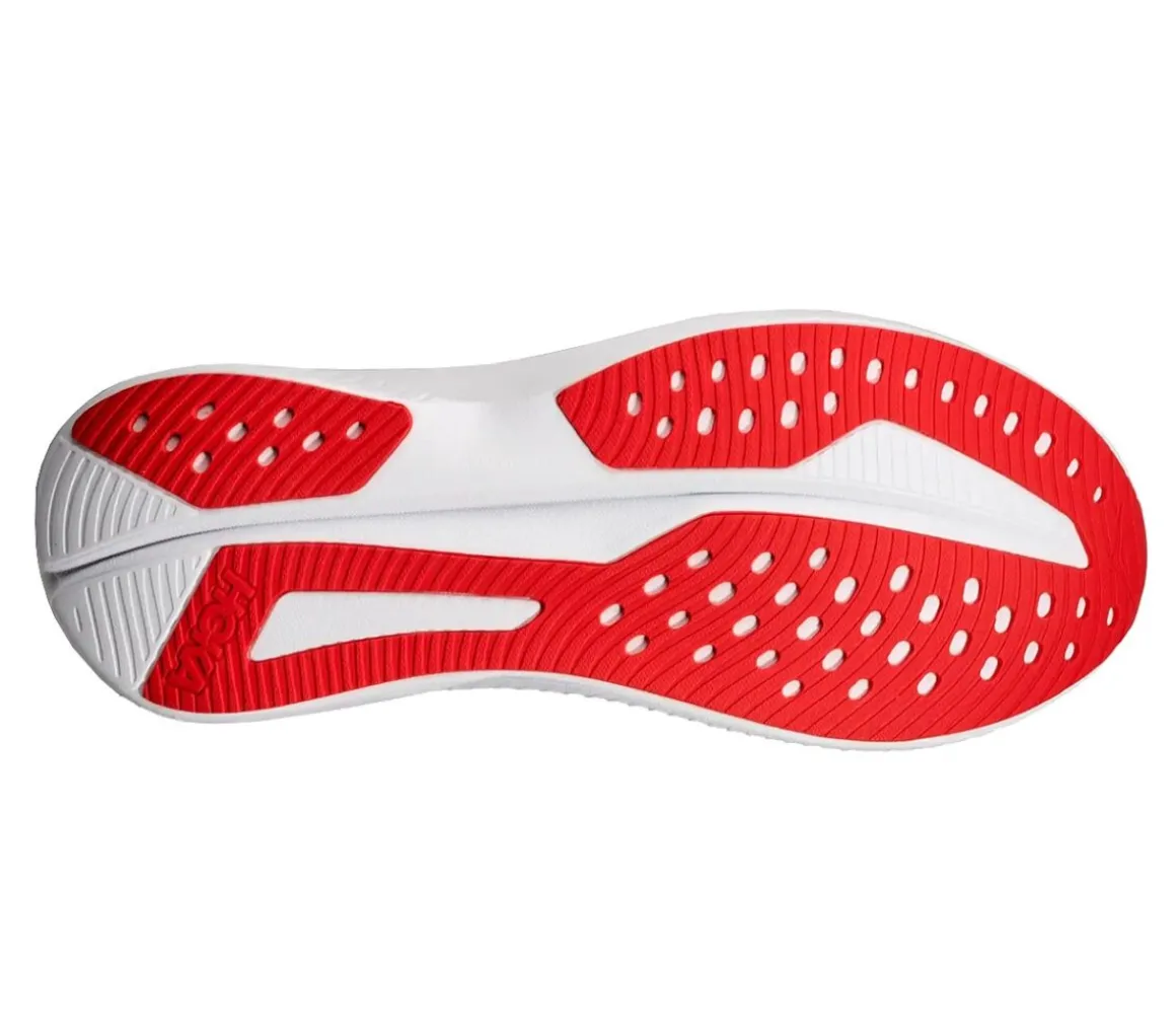 La suola è stata realizzata con un posizionamento efficiente della gomma per mantenere la scarpa leggera e resistente per correre su strada.