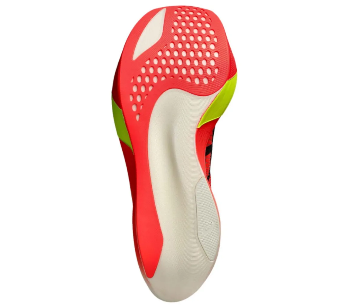 La Metaspeed Sky Paris ha un design curvo dato dall’intersuola FF Turbo+, che aiuta a risparmiare energia durante il passo e ad avere un buon cushioning e grande reattività.