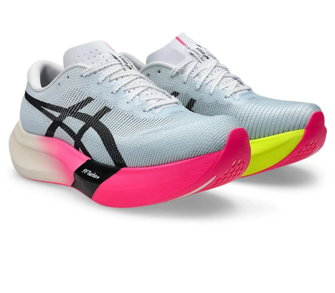 La Asics Metaspeed Sky Paris è consigliata ai runner che corrono veloce e cercano leggerezza e propulsione, grazie all’unione della schiuma FF Turbo+ e la piastra in fibra di carbonio.