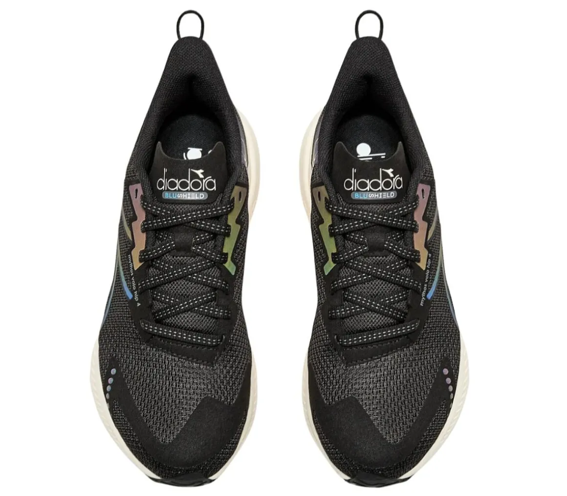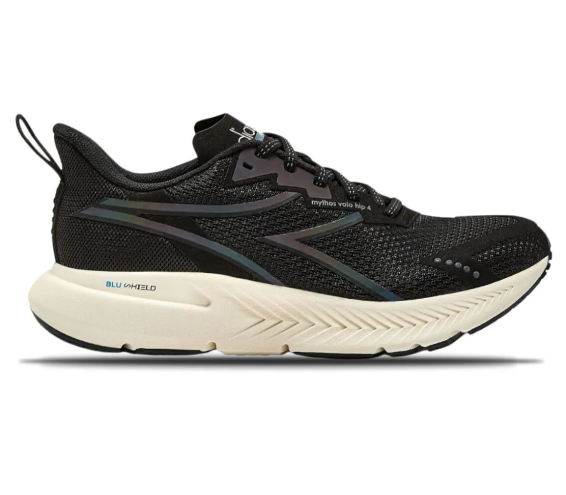 La Diadora Mythos Blushield Volo Hip 4 assicura cushioning elevato, grazie all’unione della schiuma Anima, reattiva e stabile e della tecnologia Blushield che garantisce un passo naturale.