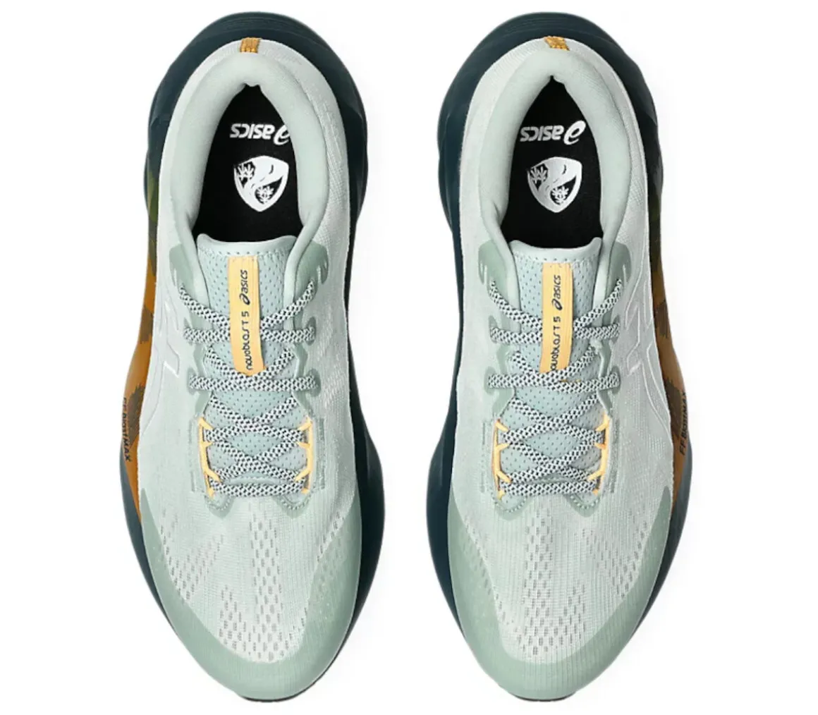 La Asics Novablast 5 TR è versatile per allenarsi quotidianamente su asfalto e sentiero battuto, grazie al cushioning e all’energia della schiuma FF Blast Max e al grip del battistrada versione TR.