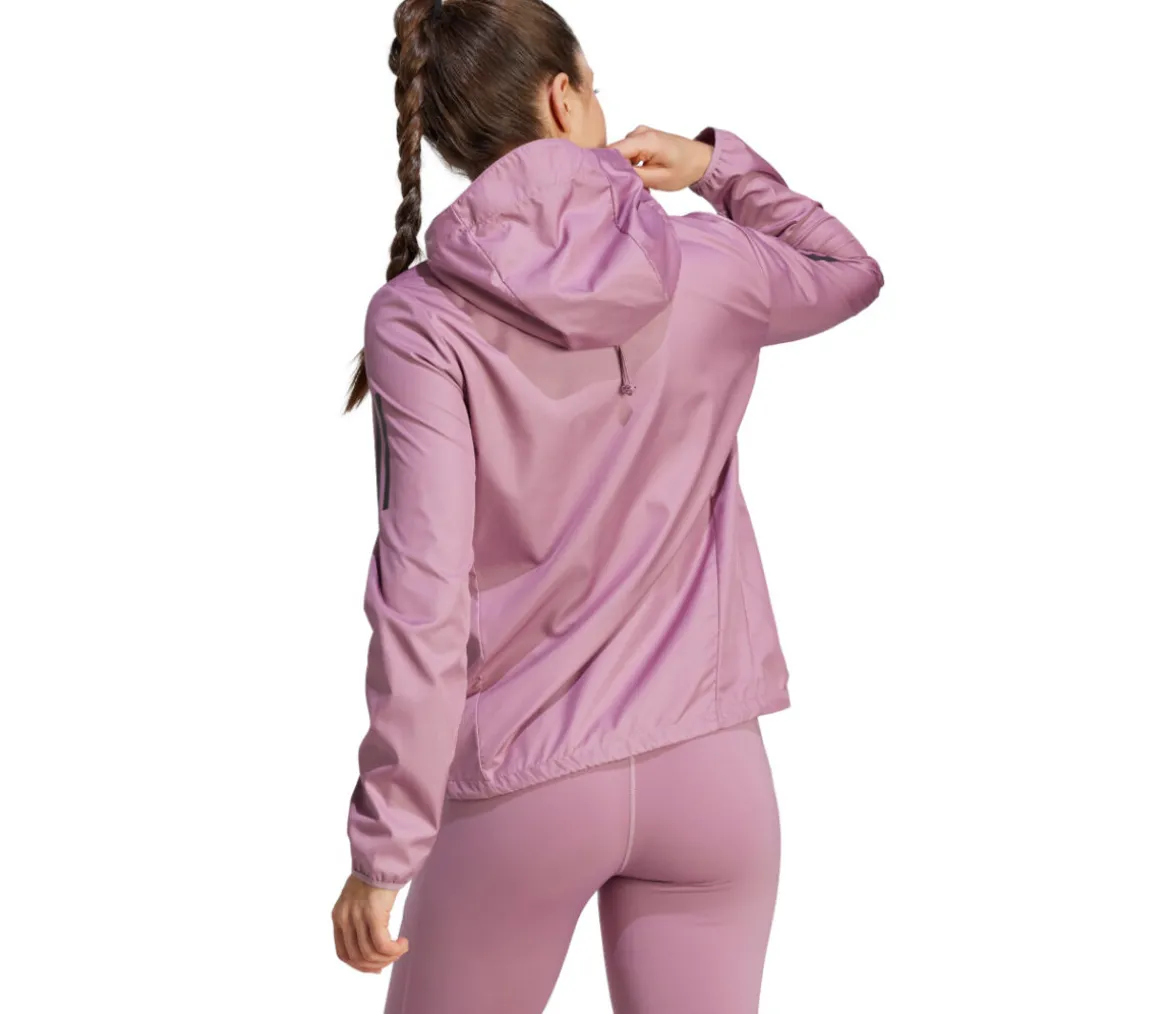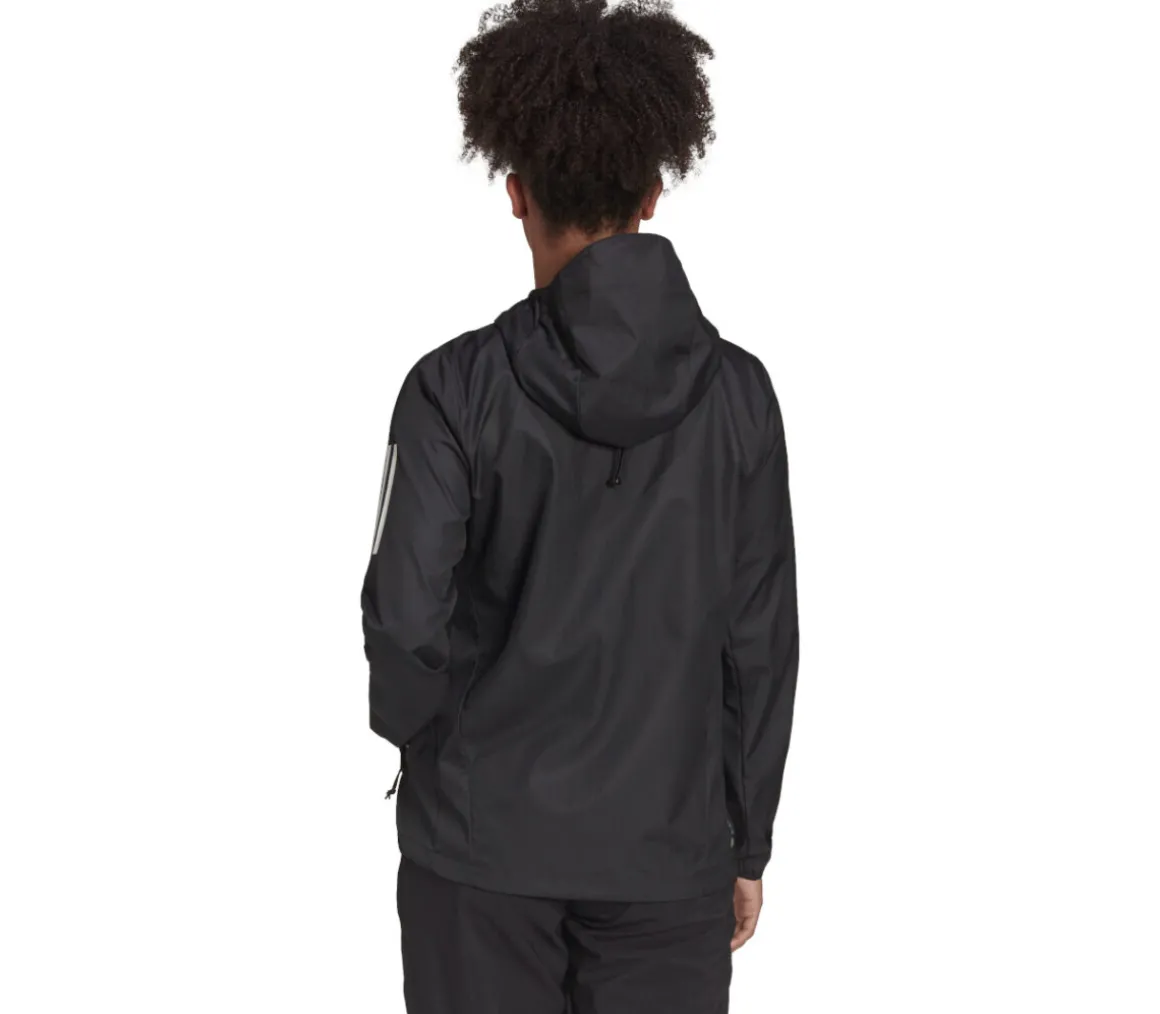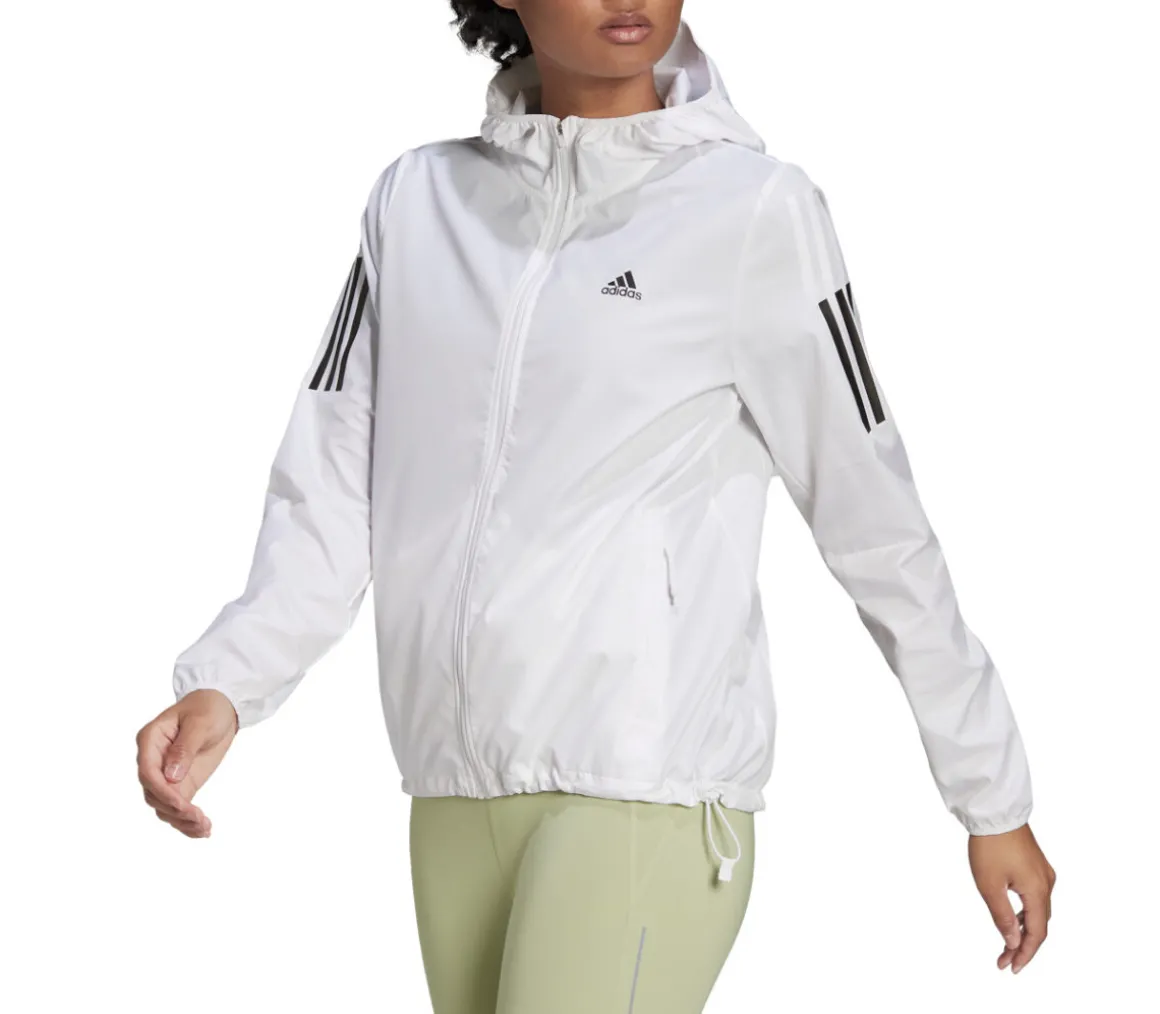 Giacca Adidas OTR Windbreaker donna in tessuto morbido, chiusura con zip integrale, è presente il cappuccio e il collo è alto.