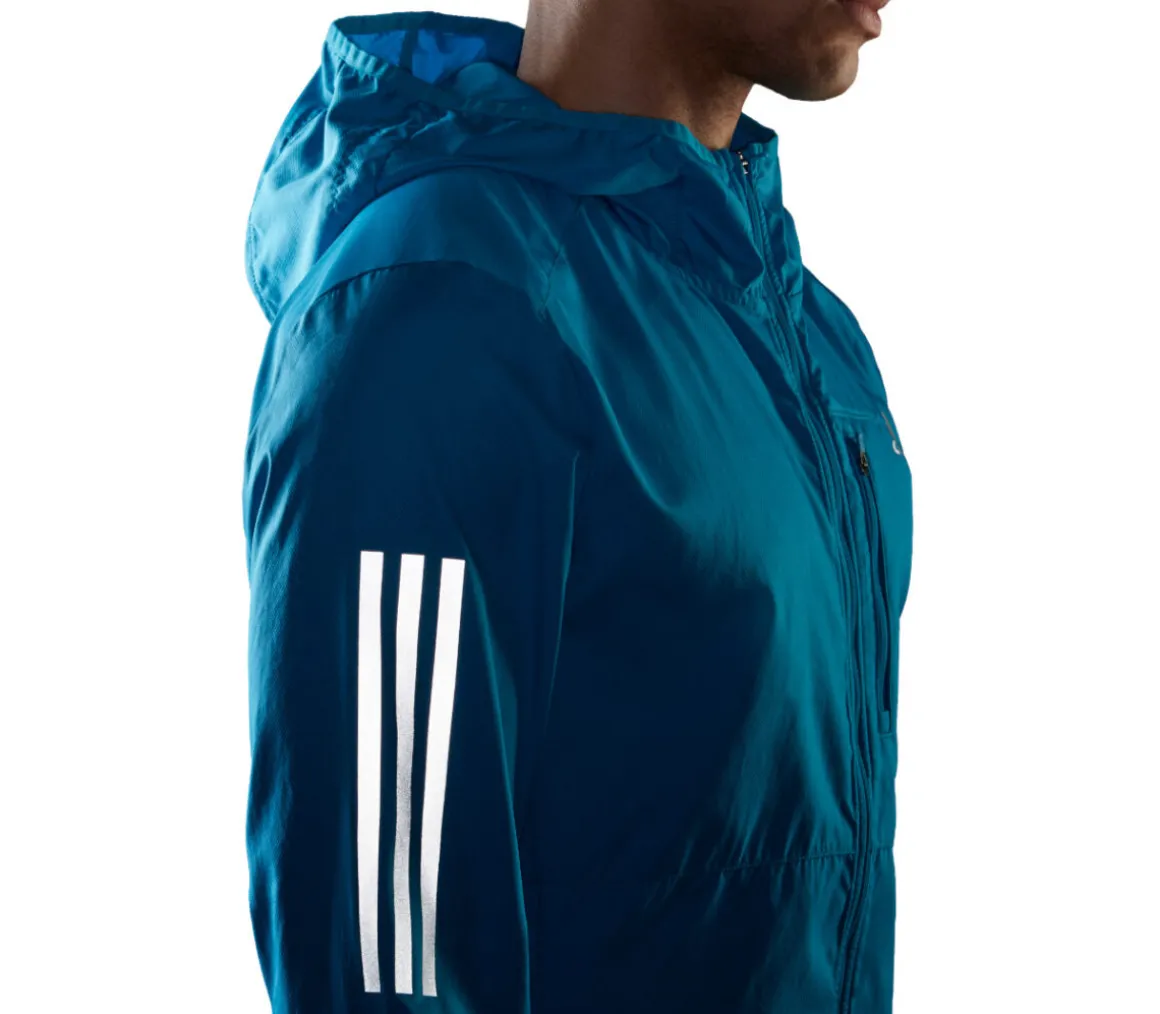 Giacca a vento per il running Adidas Own The Run idrorepellente e con cappuccio, perfetta per gli allenamenti con pioggia e vento. La giacca ha un apertura con zip frontale e una tasca sul petto. L’interno della tasca è realizzata in tessuto anti umidità, per proteggere alla perfezione lo smartphone anche sotto la pioggia.