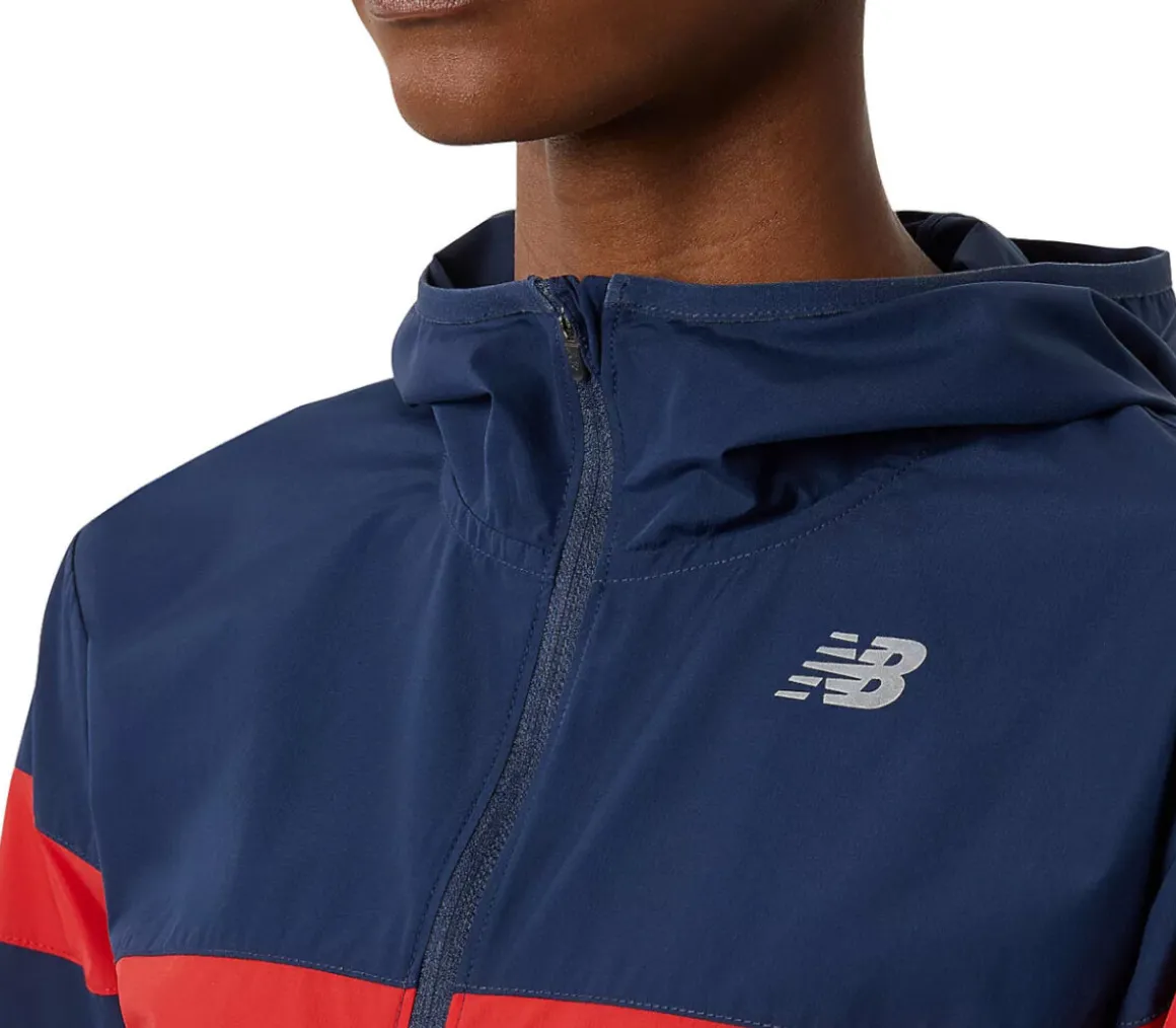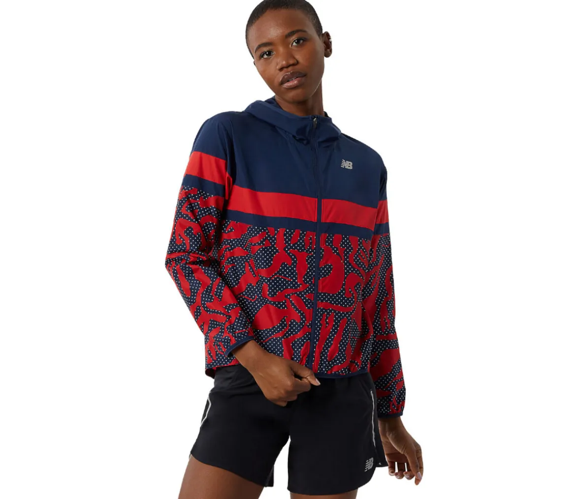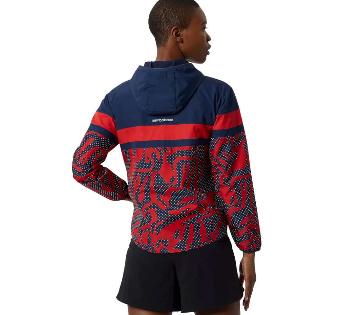 La giacca New Balance Printed Accelerate da donna ha una vestibilità atletica ed è realizzata in politessuto leggero e resistente a vento e acqua.