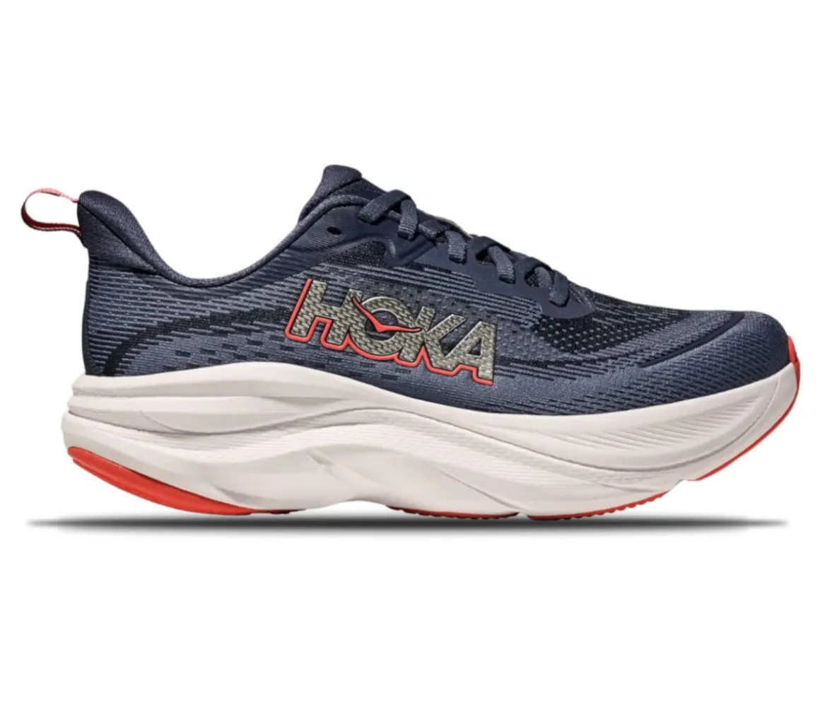 La Hoka Skyflow offre cushioning e stabilità, date dall’intersuola SCF EVA, e dal metarocker sul collo del piede che assicura falcate agili per le corse quotidiane.