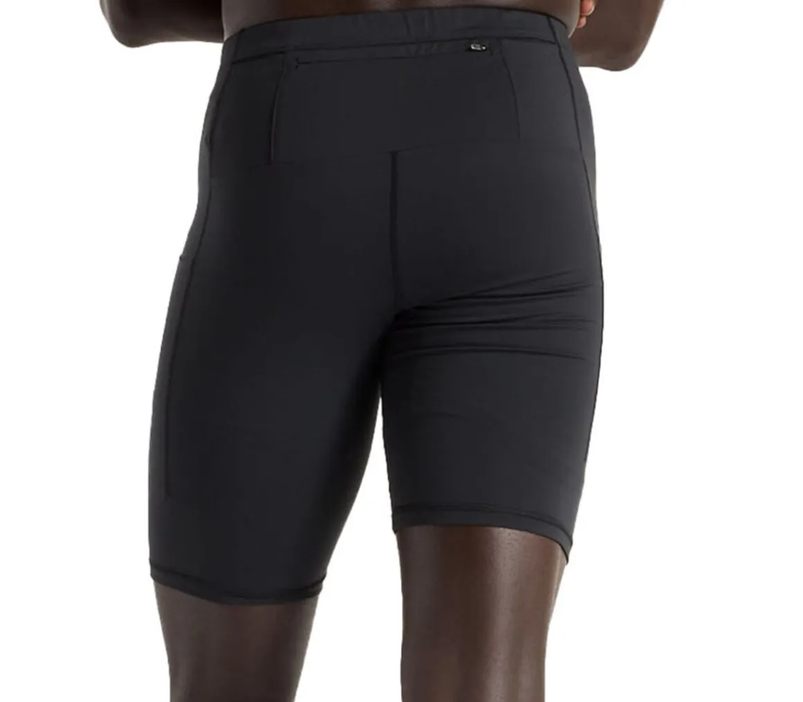 I pantaloncini hanno una fascia elastica in vita con cordino per regolare la vestibilità, un taschino con zip sul retro e due tasche laterali; le cuciture piatte evitano ogni forma di attrito con la pelle.