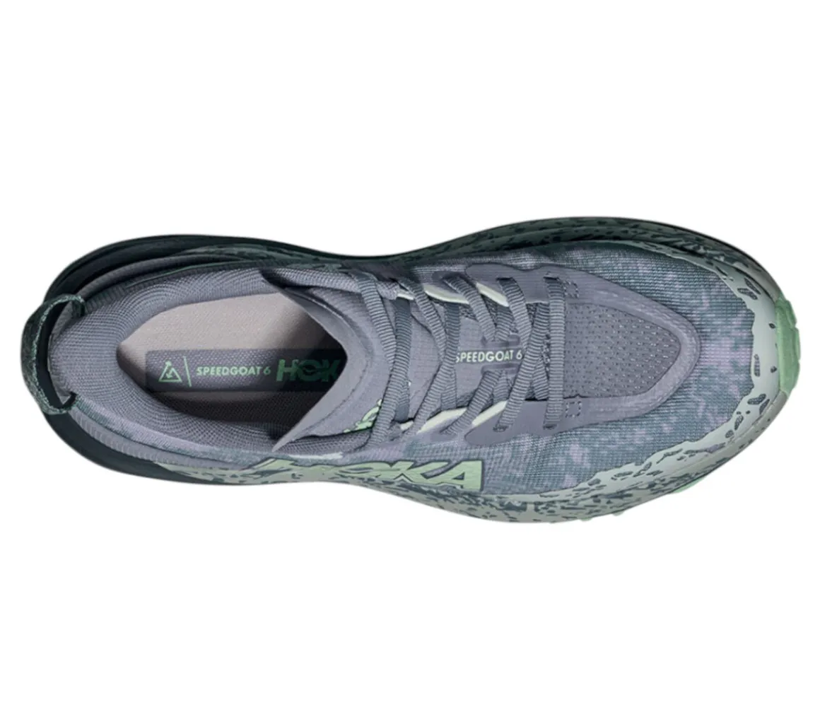 La Hoka Speedgoat 6 è una scarpa da trail running per le runner medio leggere che si allenano su sentieri rocciosi e tecnici, grazie alla protezione del battistrada Traction Lug.
