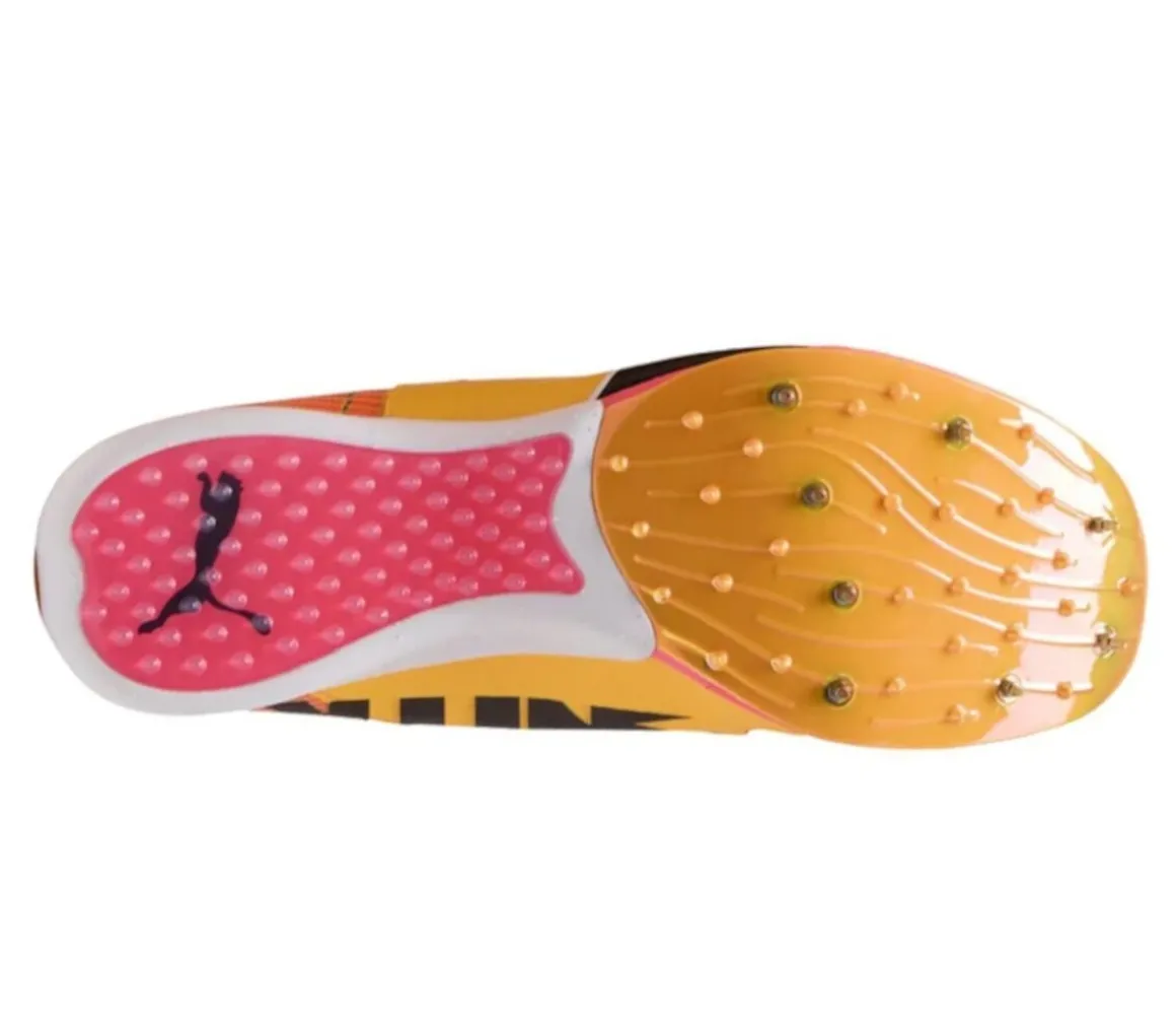 La suola in gomma chiodata presenta 8 tacchetti da 7 mm che assicurano grande grip e aderenza per correre su pista e per affrontare le gare di salto triplo.