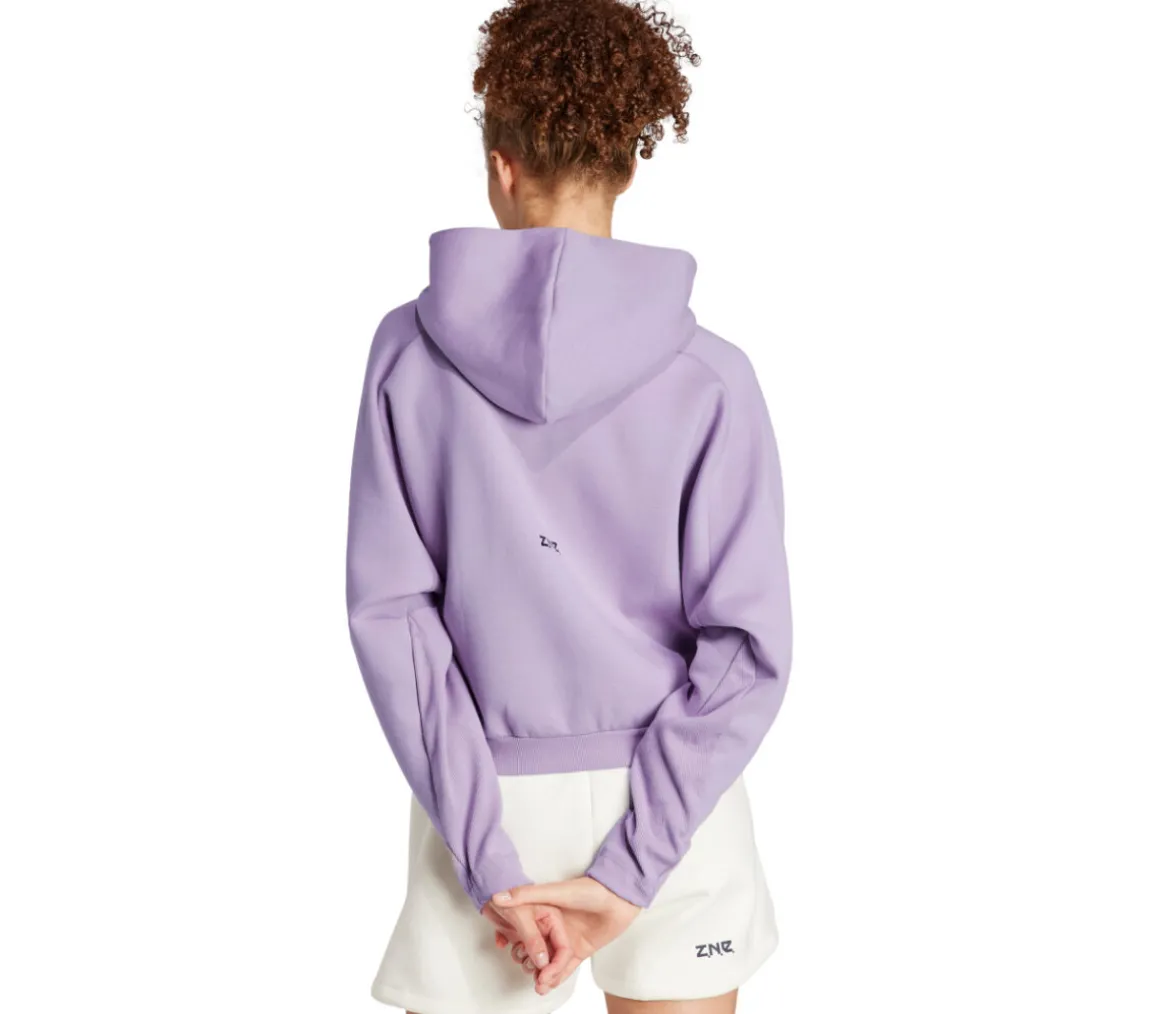 La felpa Adidas Z.N.E. Full Zip da donna ha un tessuto morbido ed è realizzata con la tecnologia AEROREADY, che mantiene il sudore lontano dalla pelle.